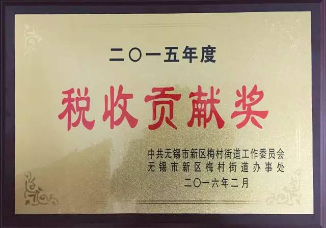 近日,為表彰2015年度對無(wú)錫市新區梅村經(jīng)濟工作作出突出貢獻的企業(yè),無(wú)錫新區梅村街道召開(kāi)了先進(jìn)表彰暨作風(fēng)建設大會(huì )。無(wú)錫華海2015年度實(shí)現各項稅收1.01億元,榮獲由中共無(wú)錫市新區梅村街道工作委員會(huì )和無(wú)錫市新區梅村街道辦事處聯(lián)合授予的2015年度稅收貢獻獎。此殊榮的獲得也體現了我司為增加地方財稅收入和助推經(jīng)濟發(fā)展做出了巨大的貢獻。
