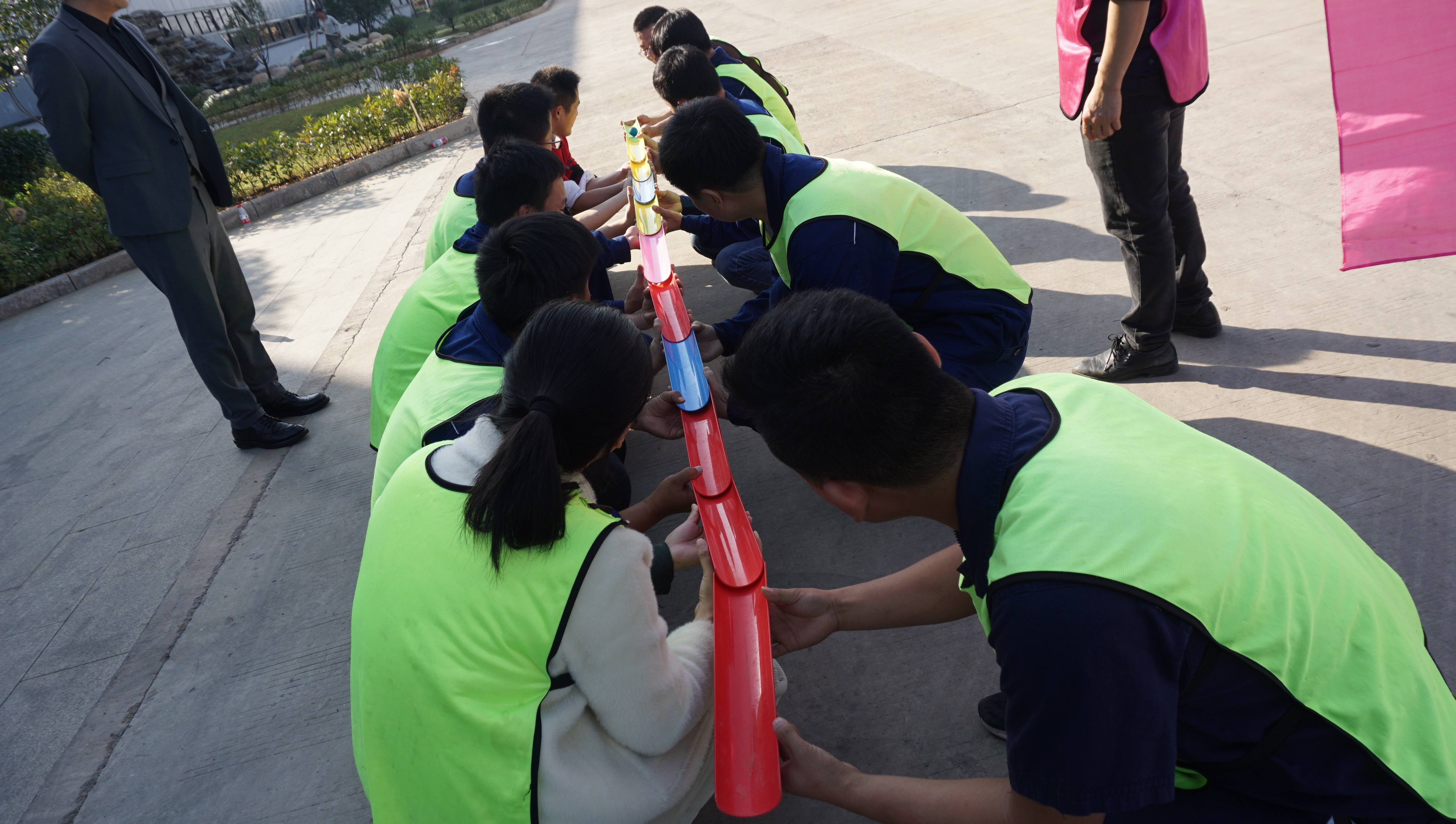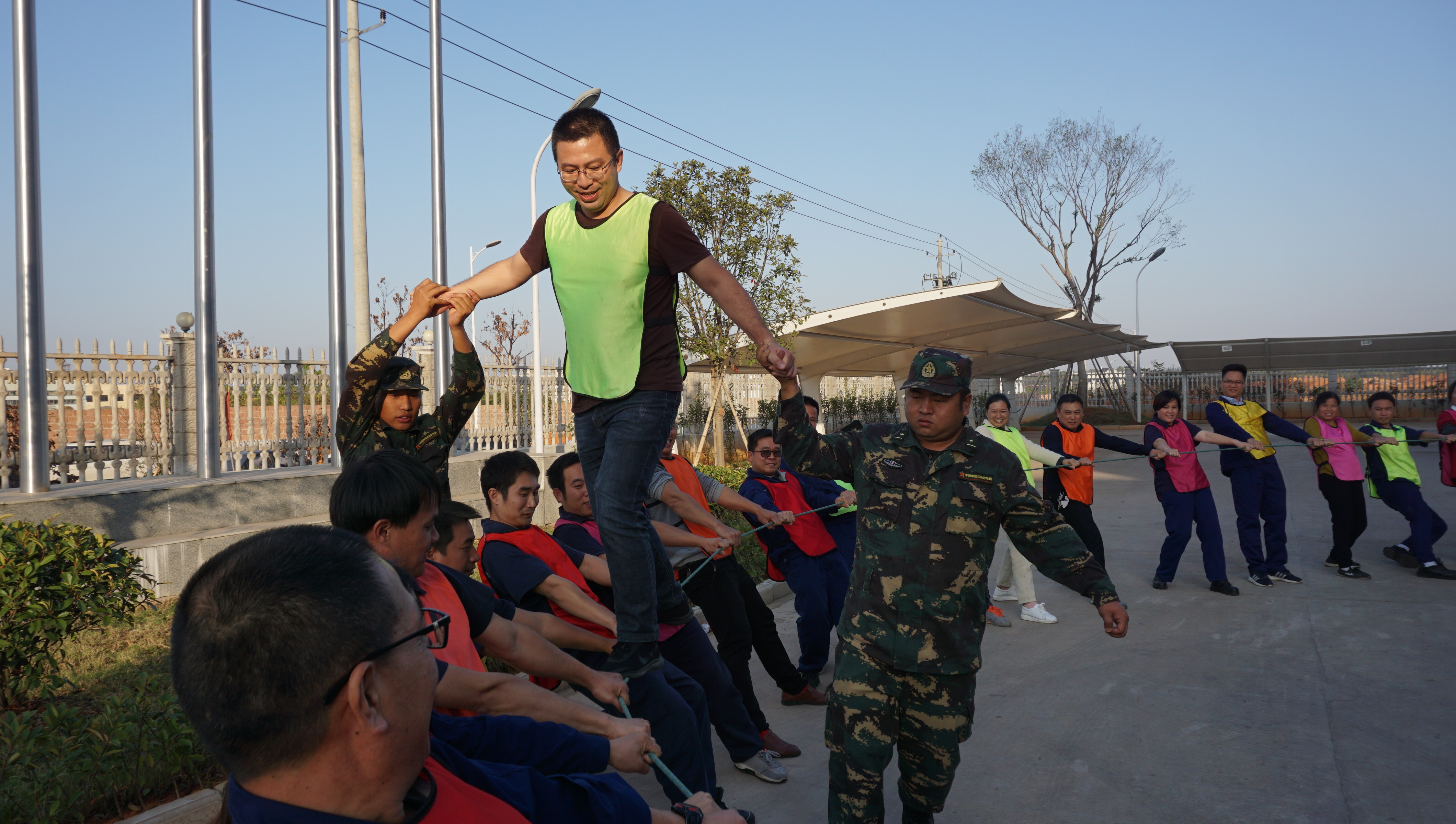 本次活動(dòng)共設置了軍姿、開(kāi)營(yíng)破冰、力拔山河、合力闖關(guān)、仙人指路、動(dòng)力繩圈六個(gè)項目,全員分成五個(gè)戰隊展開(kāi)激烈角逐,并根據每項的表現進(jìn)行打分,最后根據各隊得分評獎。