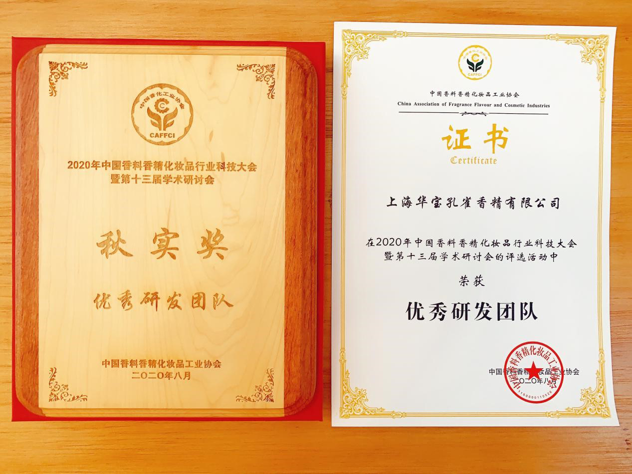上海華寶孔雀香精有限公司榮獲“優(yōu)秀研發(fā)團隊”榮譽(yù)稱(chēng)號