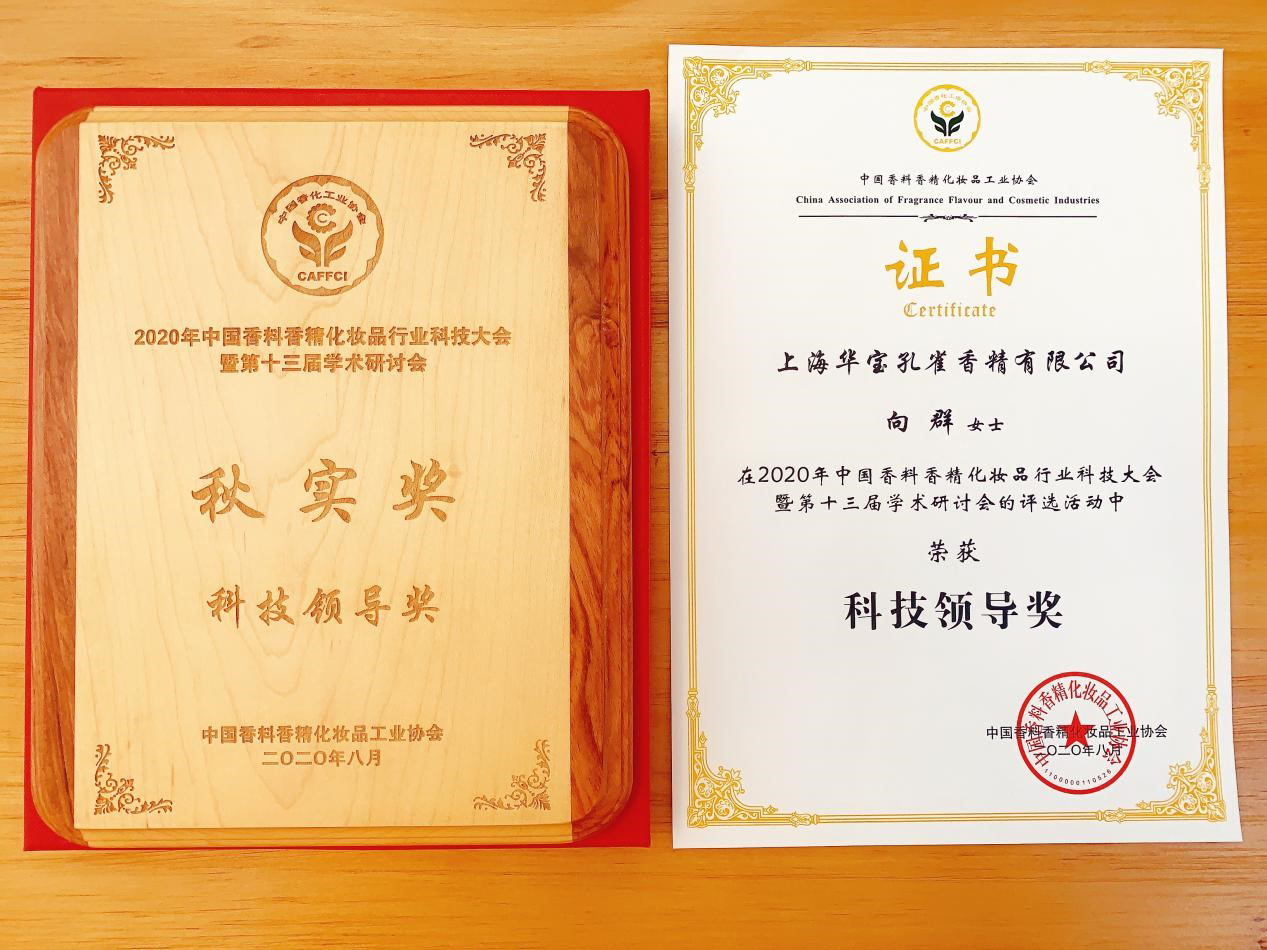 華寶孔雀總調香師向群女士榮獲“科技領(lǐng)導獎”榮譽(yù)稱(chēng)號
